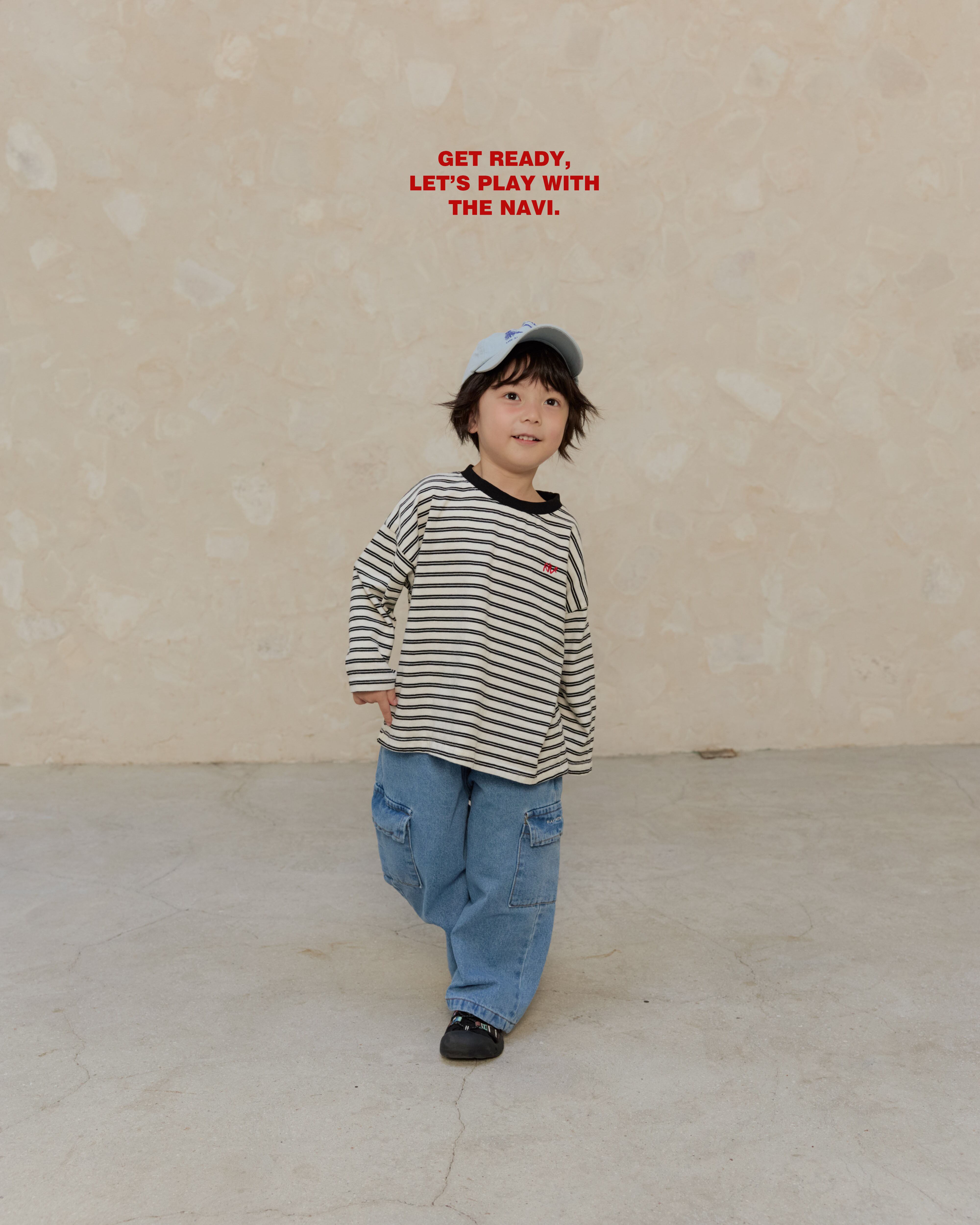 《送料無料》予約:ポケットワイドデニムパンツ【navi】※ジュニアサイズ